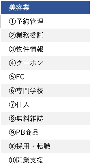 美容業には、ざっと以下のような11種類の派生系ビジネスが存在します。