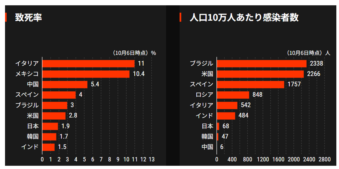 引用:日本経済新聞「チャートで見る世界の感染状況 新型コロナウイルス」