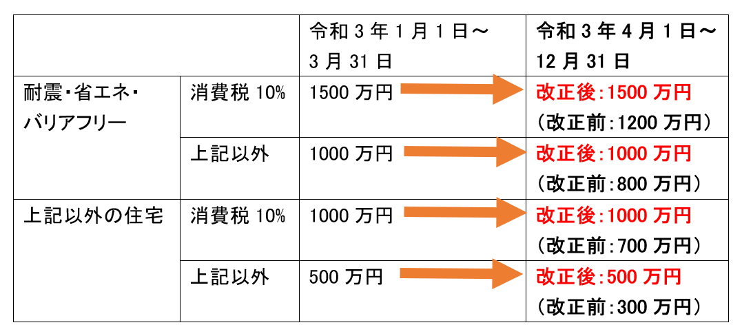 本来、令和3年4月1日以降の契約締結分については、非課税枠が縮小されるはずでした。しかし改正により、現行の非課税枠は令和3年12月31日まで据え置かれます。具体的には次の通りです。