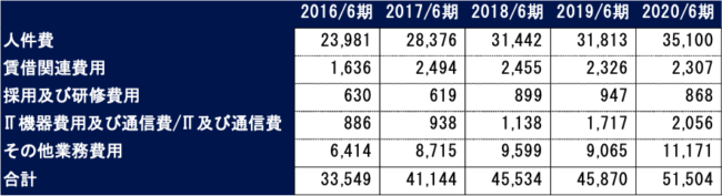 なお2017年度に増加している賃借関連費用については、主に東京事務所の移転によるものと考えられます。