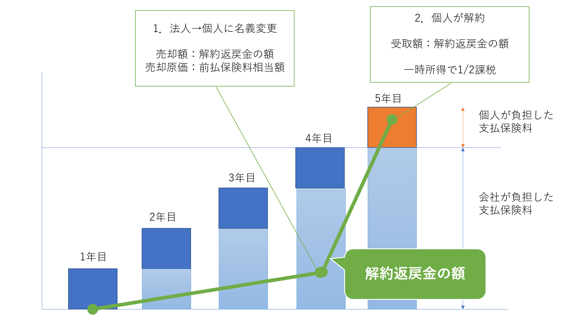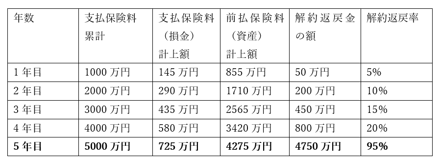 - ・5年目に会社役員が解約し、返戻金を受け取る