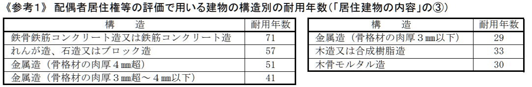 実務では、「配偶者居住権等の評価明細書」の裏側に記載されている耐用年数を使います。