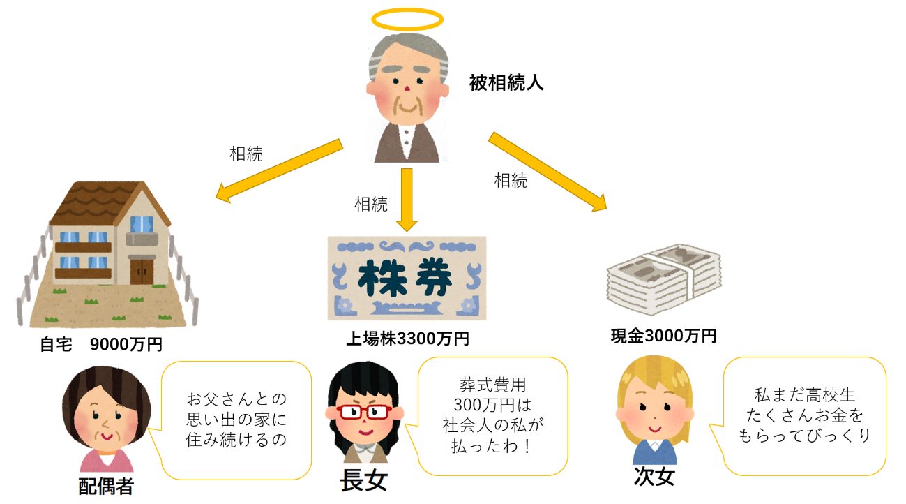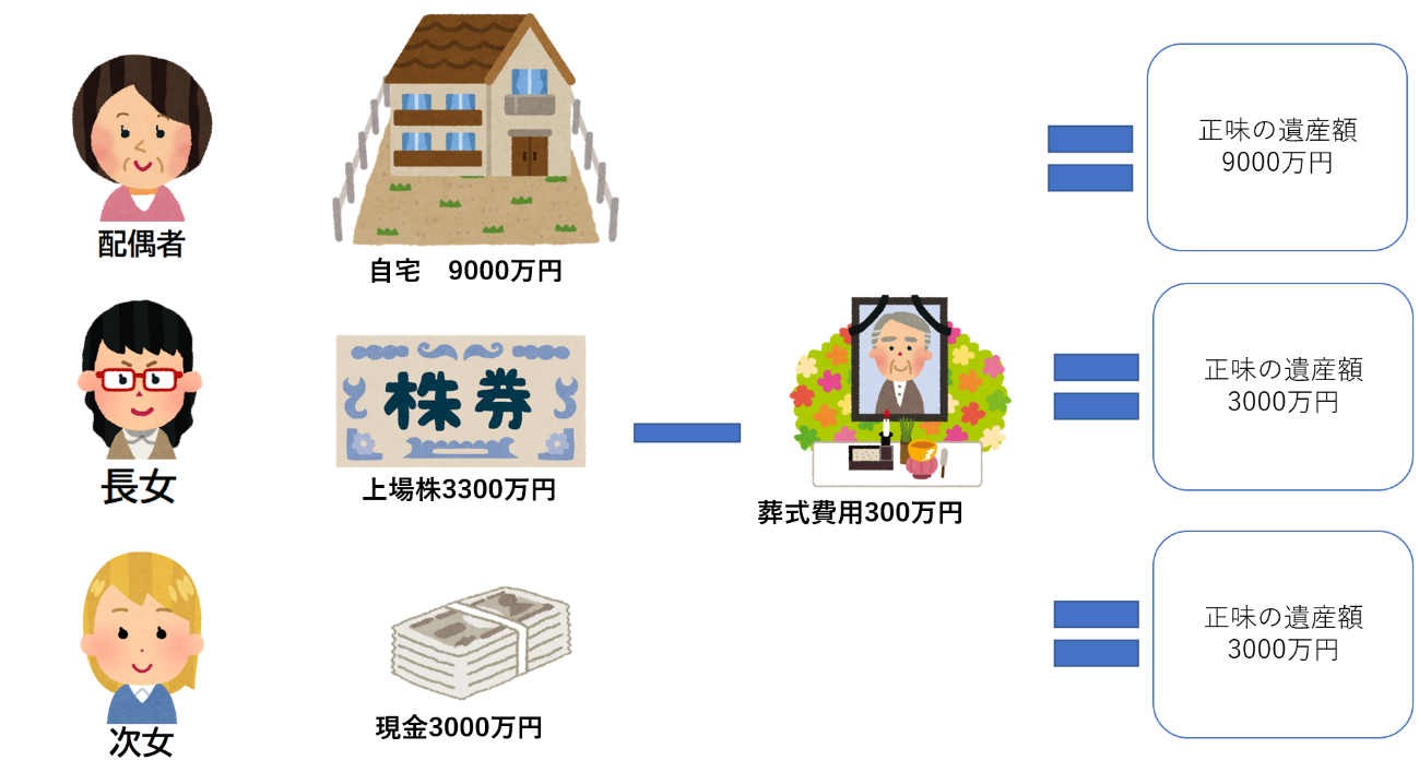 事例でも、この流れに沿って相続人それぞれの正味の遺産額を計算すると、次のようになります。