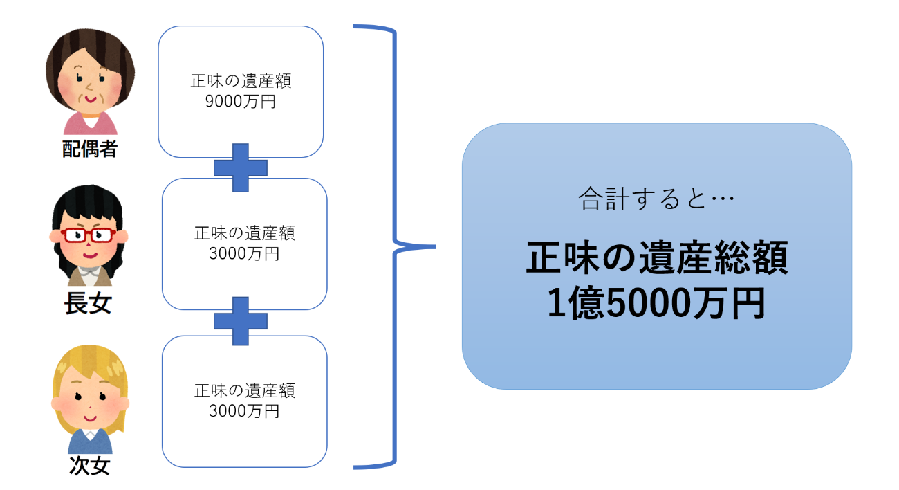 1でそれぞれの正味の遺産額を計算したら、全員分を合計し、正味の遺産額の総額を算出します。