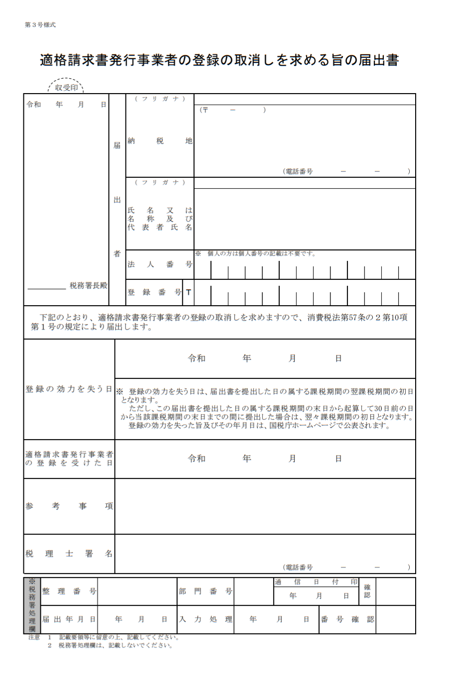 【引用元】適格請求書発行事業者の登録の取消しを求める旨の届出書(国税庁)