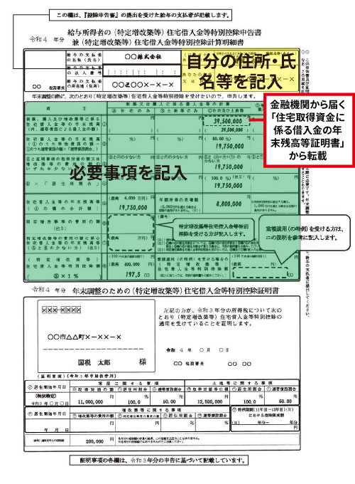 (画像:国税庁「給与所得者の(特定増改築等)住宅借入金等特別控除申告書兼(特定増改築等)住宅借入金等特別控除計算明細書の記載例」を元に筆者作成)