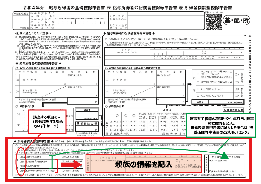 (画像出典:国税庁「令和4年分 給与所得者の基礎控除申告書・給与所得者の配偶者控除等申告書・所得金額調整控除申告書」を元に筆者作成)