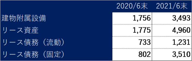 2021年度は建物附属設備+17億円、リース資産+31億円と大きく増加しています。附属明細書を見ると大手町オフィス関連で設備投資を行っており、一部の建物附属設備はリース契約に変更しているようです。