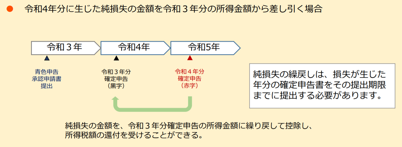 - ●3:損失を前年に繰り戻して還付を受けられる