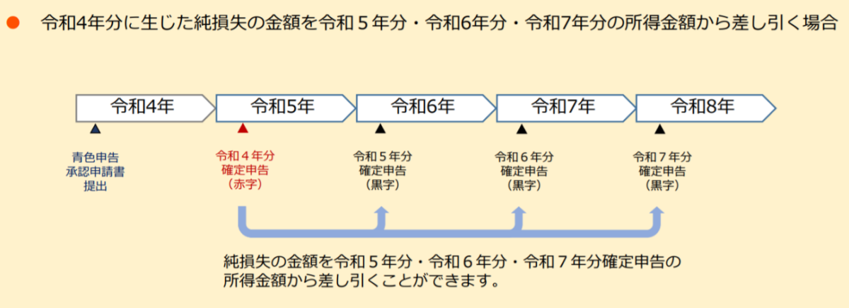 青色申告だと、事業所得の赤字を翌年以後3年間繰越せます。翌年や翌々年の黒字と繰り越した赤字を相殺すれば、所得額と納税額を抑えられます。