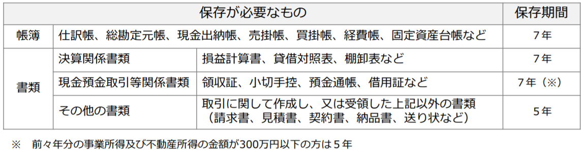 青色申告は、帳簿類や証憑書類を整理した上で保存しなくてはなりません。保存期間は次のようになっています。