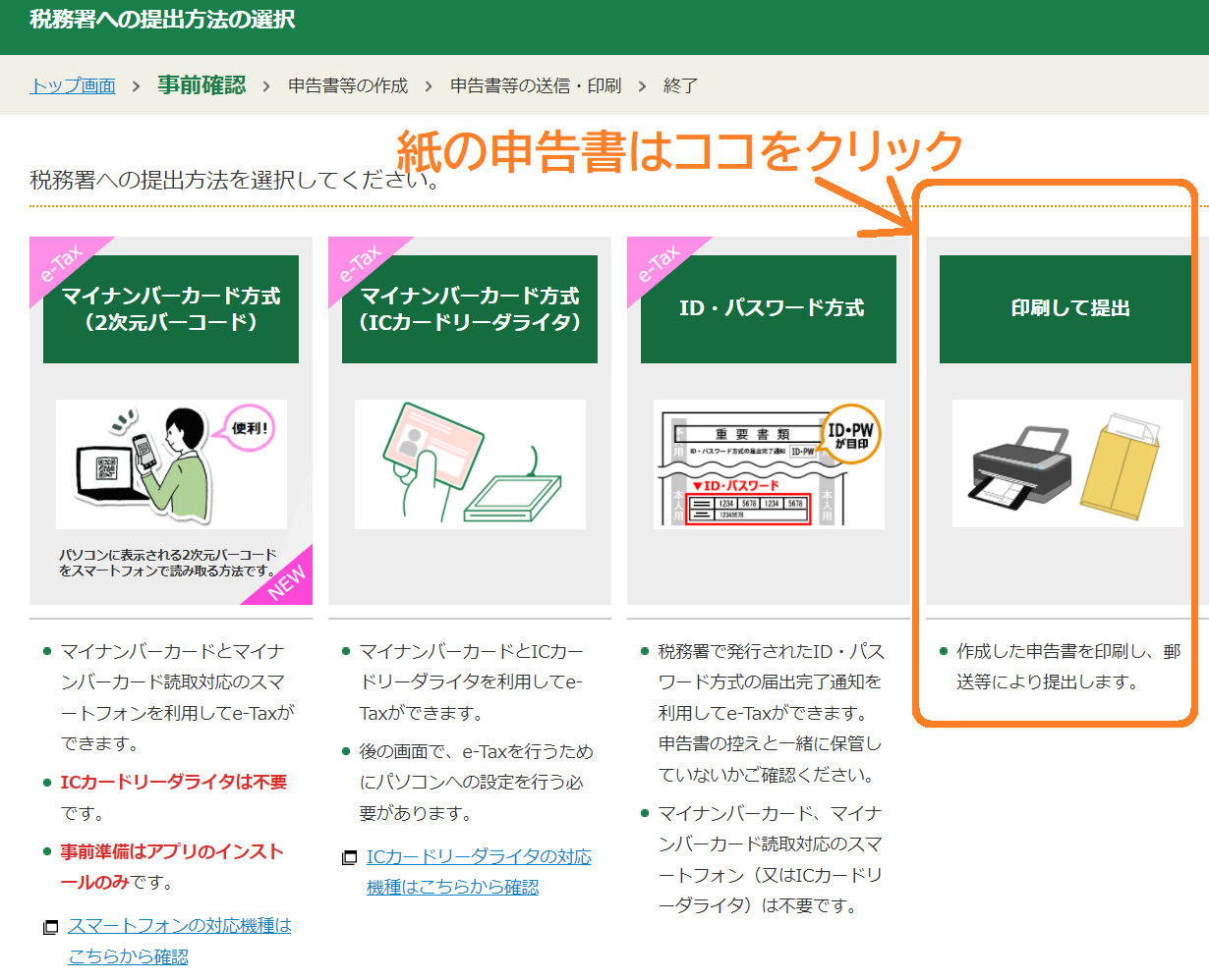 2.「税務署への提出方法」では「印刷して提出」を選択