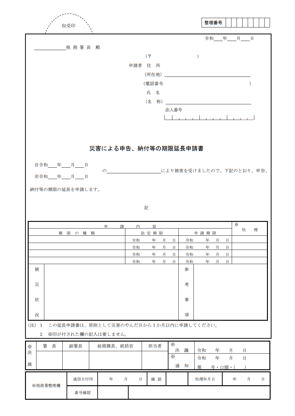 4月16日以降は原則的な方法によります。個別延長の申請書を一度提出し、税務署長から指定された期日までに申告と納税を行うのです。申請書は次のような形式となっています。