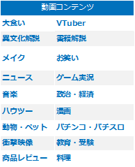 動画コンテンツには、ざっと以下のような種類があります。