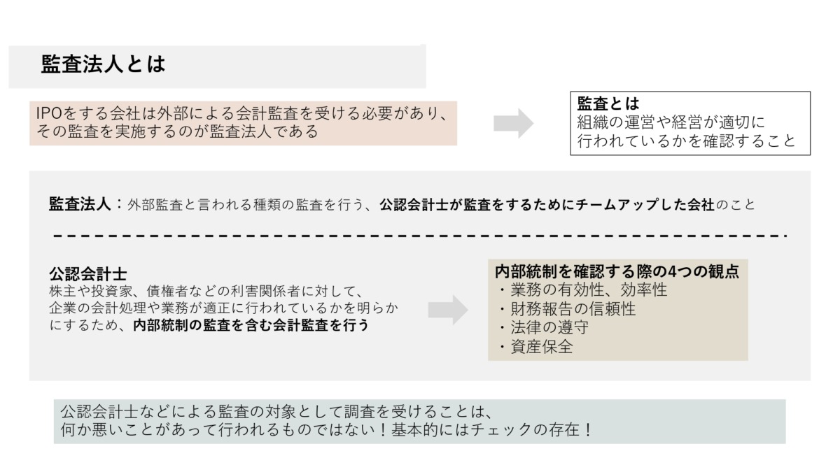 また、監査法人は、基本的にはチェックする存在ですが、指導も必要な範囲でしてくれる存在です。上手く付き合えるとよいでしょう。