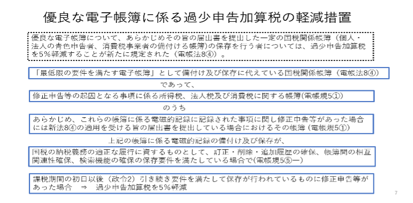 過少申告加算税の軽減措置の適用を受けるためには、経理誤りを自ら発見し、是正できる事後検証性の高い帳簿を備えているという意味で、いくつかの厳格な要件を満たしていなくてはなりません。