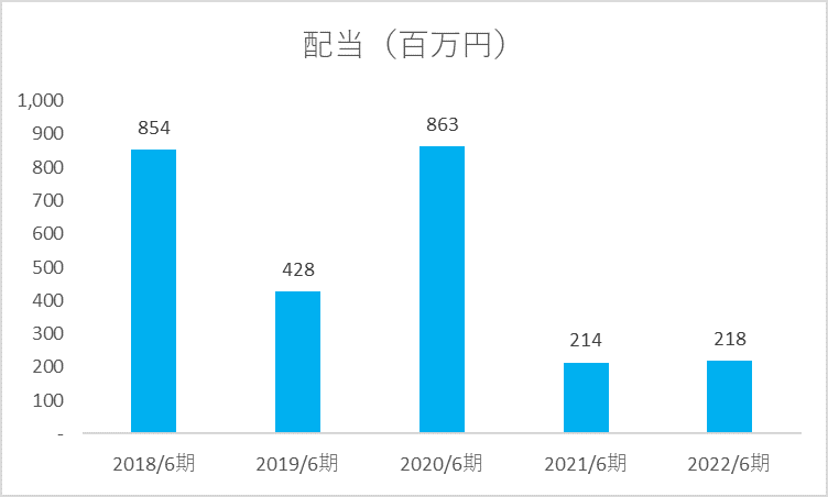 なお2018年度と2020年度が9億円、2019年度が4億円となっており、以前と比較すると支払配当は減少傾向にあります。