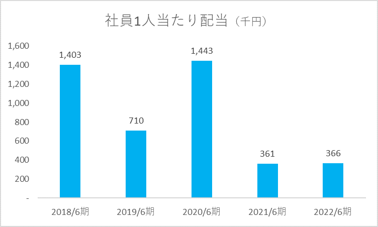 * 配当総額÷基準日(前期末)時点の社員数 にて算出