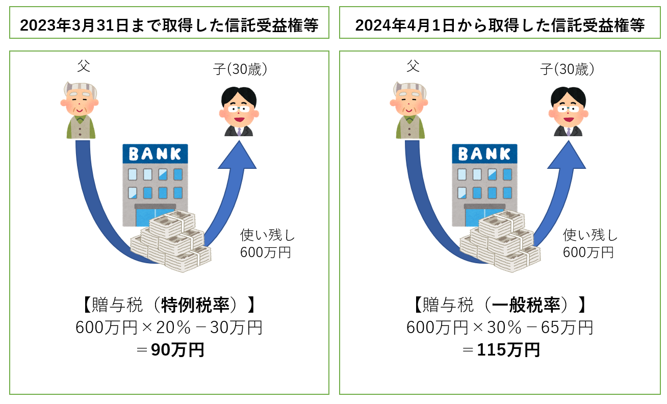 いずれも2023年4月1日以降に取得する信託受益権等の相続税・贈与税に適用されます。