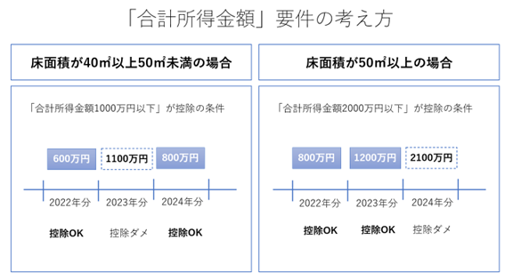 40㎡以上50㎡未満:「合計所得金額1000万円以下」で変わらず