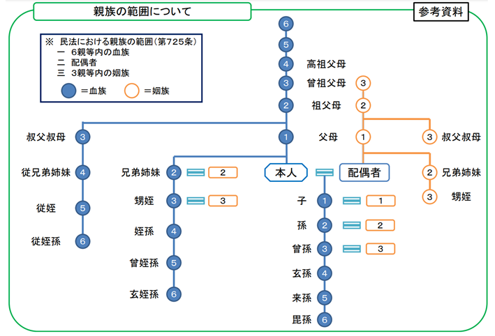よ「親族の範囲ってどうなっているんだっけ…ちょっと見てみようか」