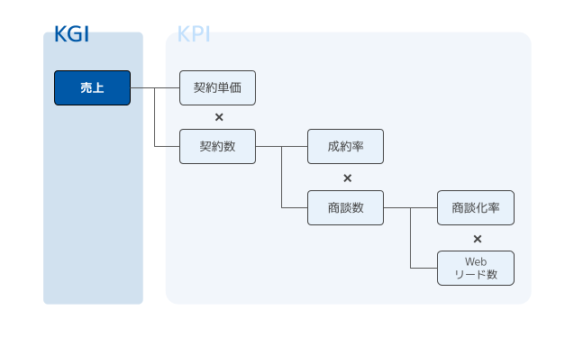 この連載記事においては、以降、「売上」をKGIとして書き進めていきます。 - Step.2:KGIをKPIでロジックツリー状に分解する